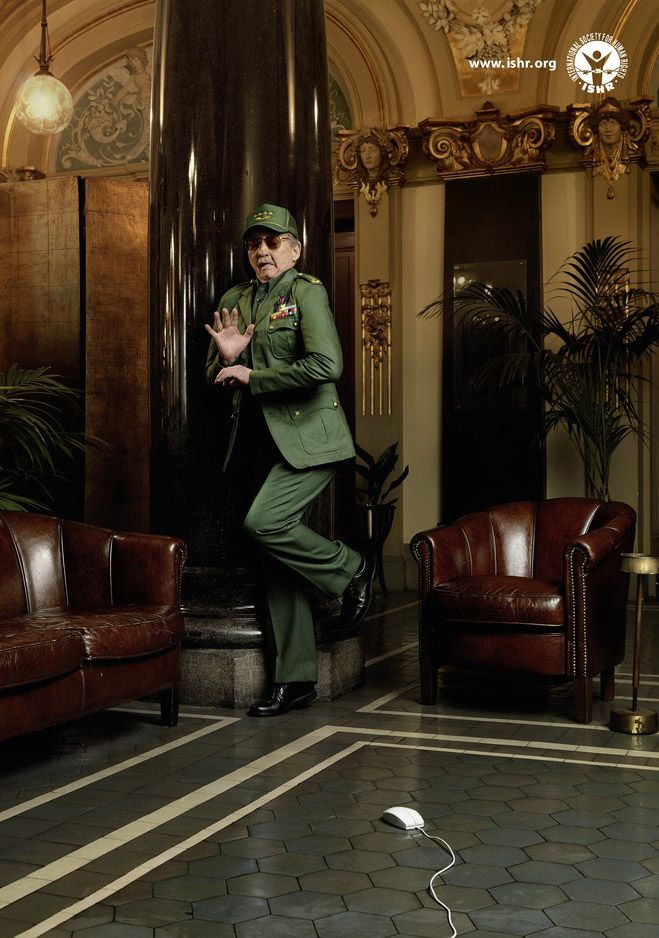 Print ads from the "Scared Dictator" Campaign by the International Society for Human Rights.